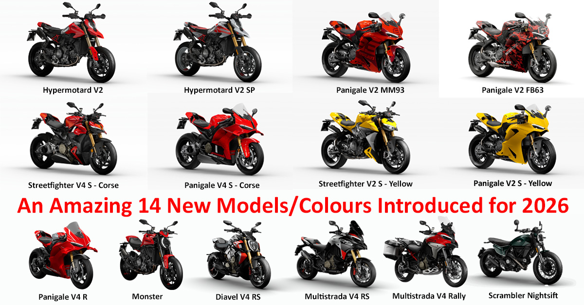 Rarely have we seen a range update of the magnitude that Ducati have announsed for 2026. 14 New models & colour variations that are simply stunning, both in looks and technological advances.