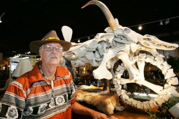 The ‘Cowasaki’ bone motorcycle which took a year to make is currently on display at Dunn’s Attic & Auction House in Ormond Beach for $55,000 (£33,108). Although there have been several previous owners….a cow or two, raccoon, alligator, goat and so the list goes on.