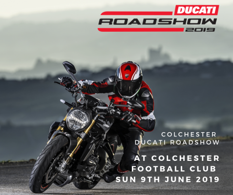 This year's Colchester Ducati Roadshow will again be held at Colchester United Football Club on Sunday 9 June 2019.