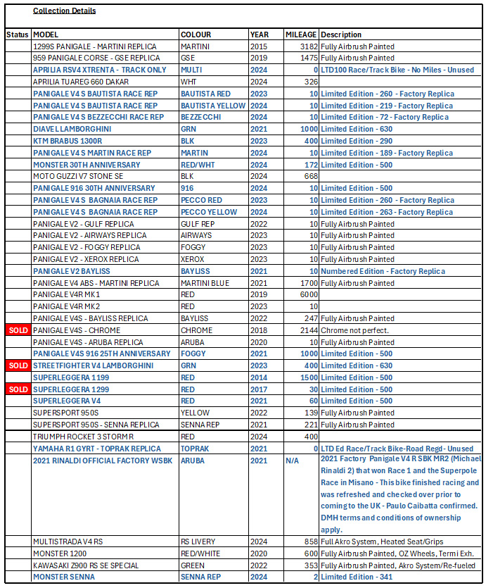 Here are the details of the bikes that have now arrived in time for our Start of Season event on 12 April.