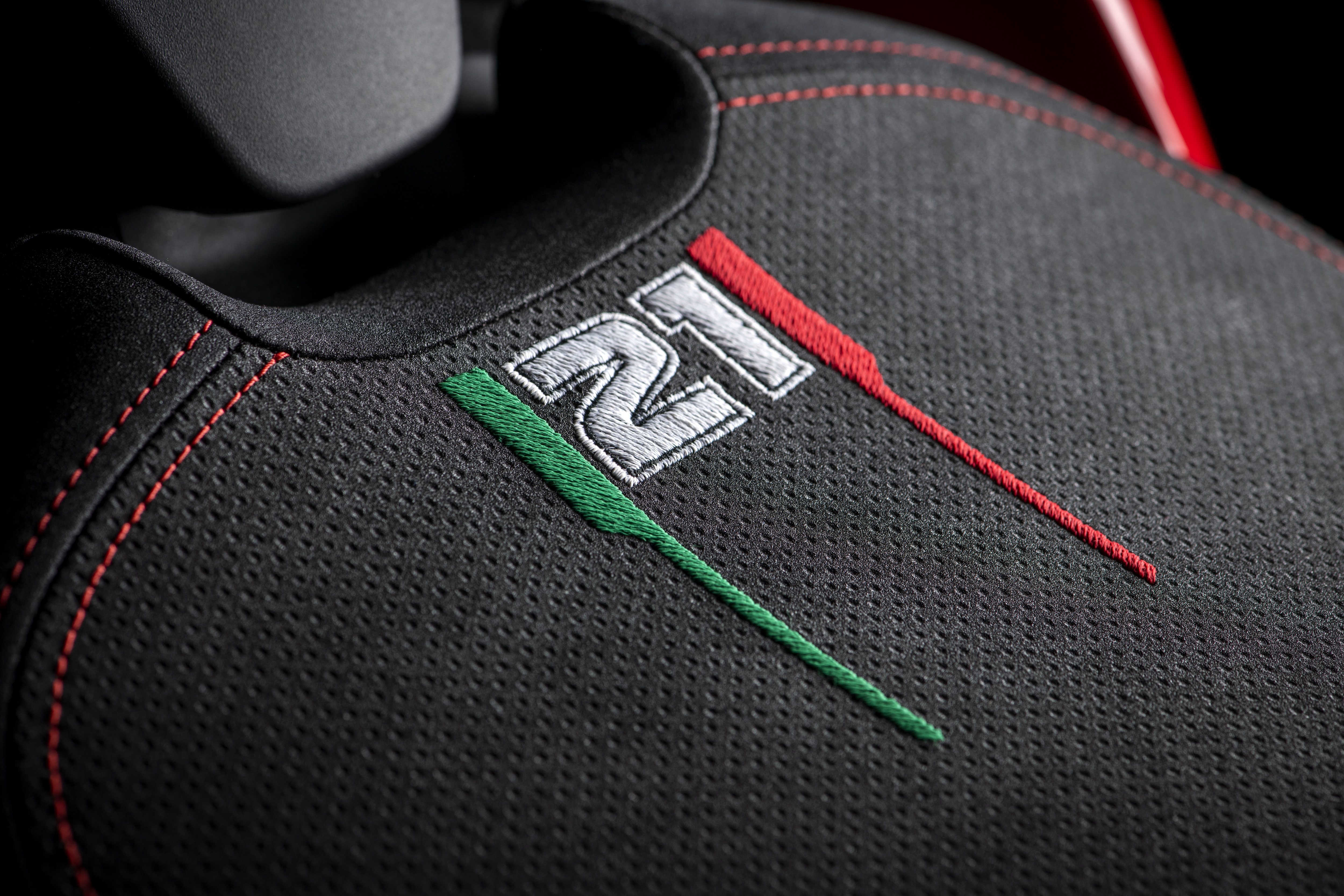 The equipment is completed by the sport grips, the silencer outlet cover in carbon fibre and titanium and the rider seat made by combining two different technical materials with double red stitching. Troy’s number 21 is embroidered in white on the saddle and, together with the green and red bands, makes up the Italian flag. The motorcycle is also equipped with self-cleaning brake and clutch pumps with smoke grey oil tanks.