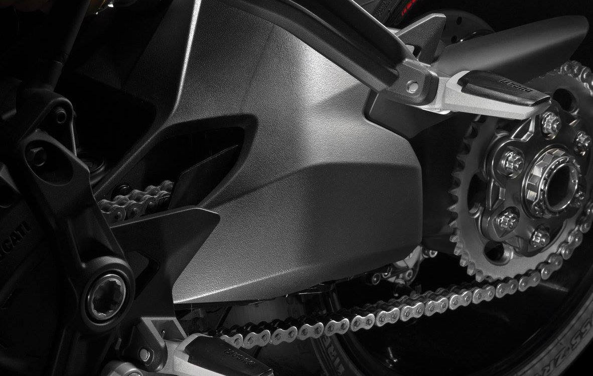 Pillion and passenger footrest hangers have been separated ensuring that the rider footrest position is vastly improved. The new sculpture of the bike now resembles the Monster 1200 R much more closely. A narrower waistline giving an enhanced feet down position.
