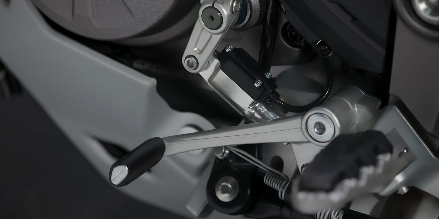 New belt covers feature the DVT logo on a metal support. The generator cover of the Multistrada 1260 engine has been redesigned to accommodate the new, more advance gear sensor which is a core component of the DQS Up & Down. Gear lever linkage has also been changed, it now features a shorter stroke for more accurate engagement.