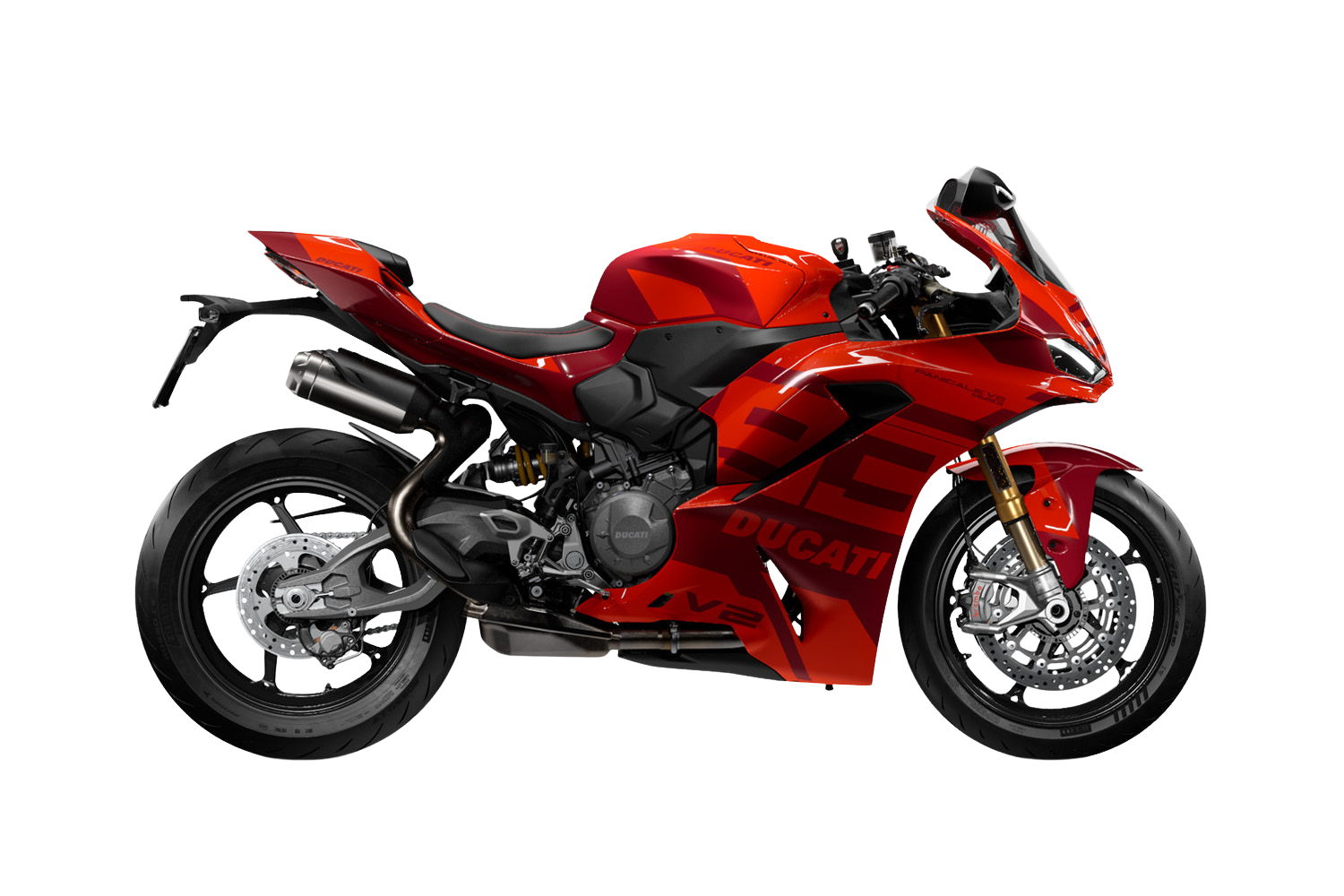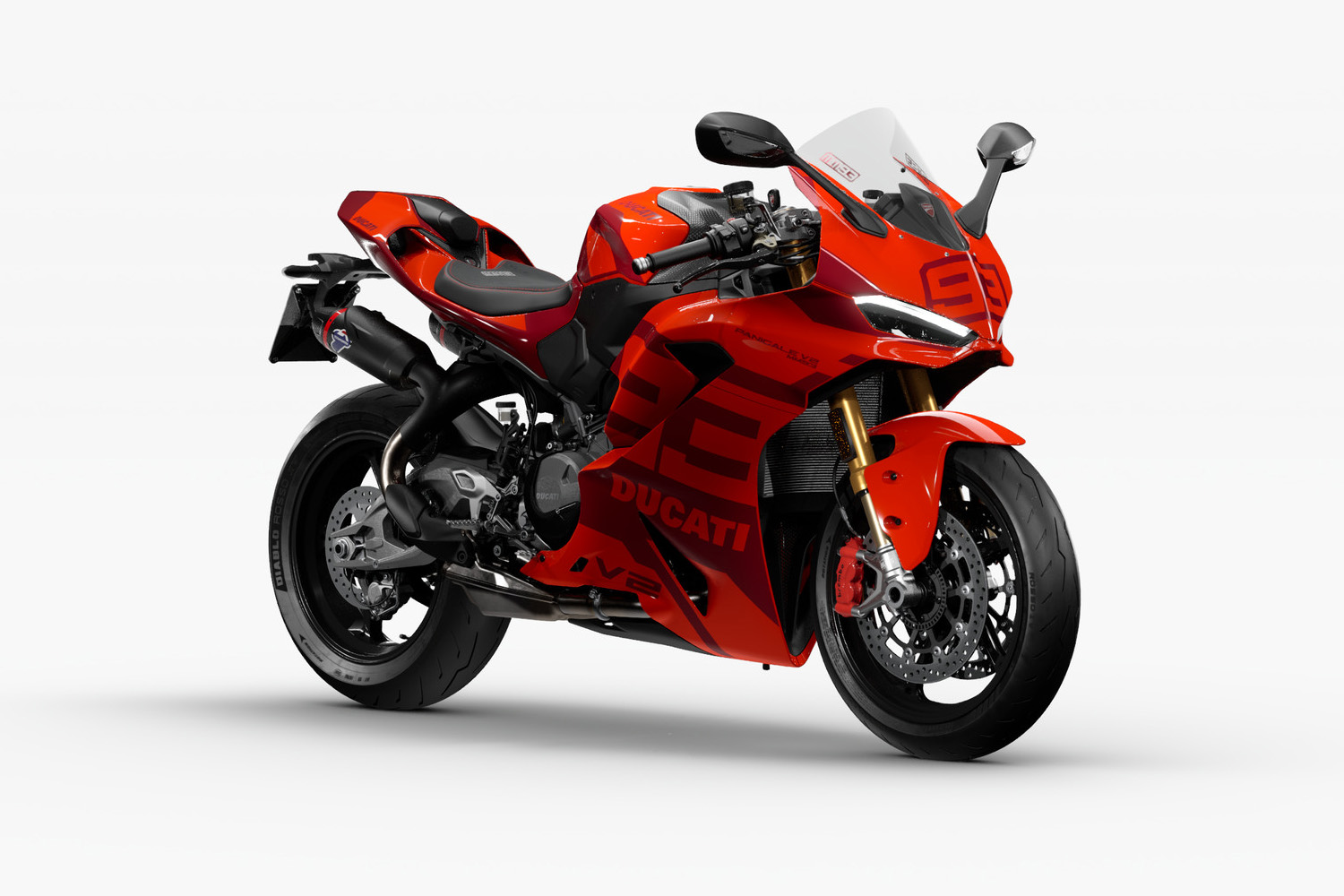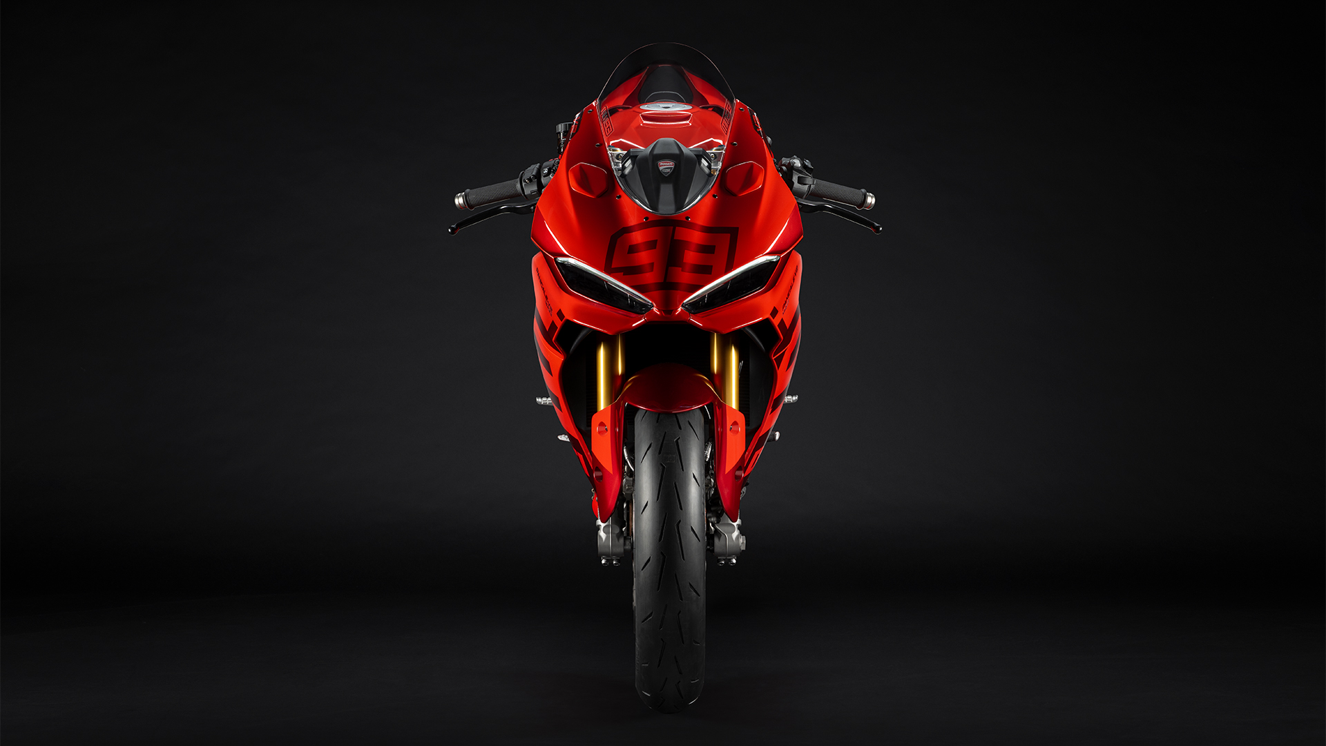 Based on the Panigale V2 S but with numerous enhancements 2 new race replica Ducati Panigale V2s are introduced, The Panigale V2 MM93 (Marc Marquez) and the Panigale V2 FB63 (Pecco Bagnaia). The enhancements over the "S" version are: forged wheels, Öhlins steering damper, lower clip-on handlebars, billet top triple clamp, sport hand grips and a larger racing screen.