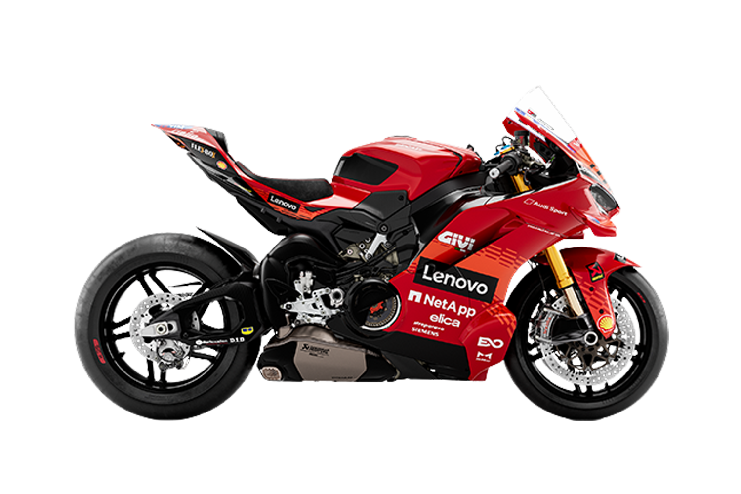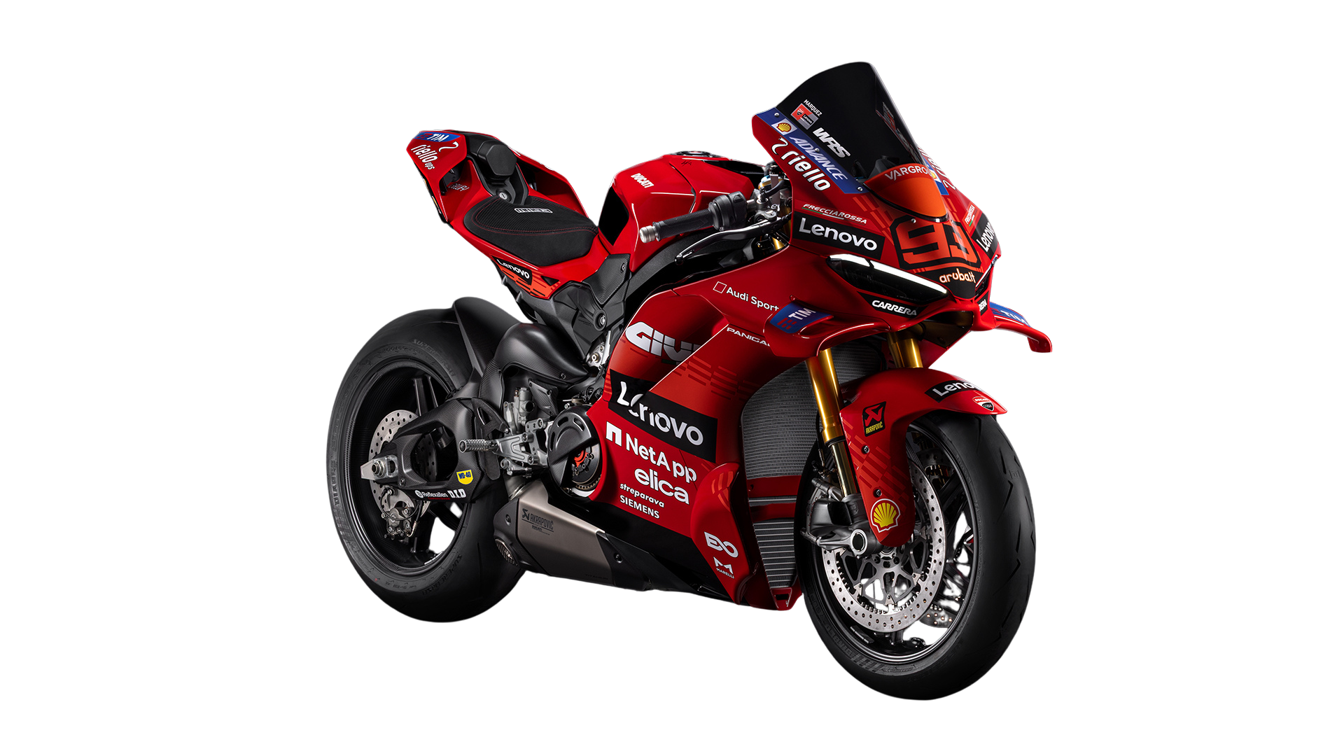 - Replica livery of Márquez’s official Desmosedici GP25 from the Ducati Lenovo racing team