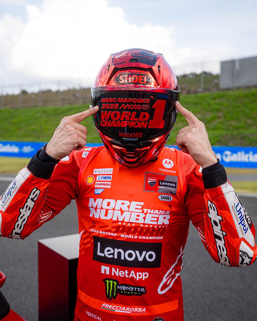 A tribute to the extraordinary achievement of Marc Márquez, who won his seventh world title with his Desmosedici GP25, contributing to Ducati's fourth consecutive MotoGP title. Another unforgettable page in racing history has been written.
