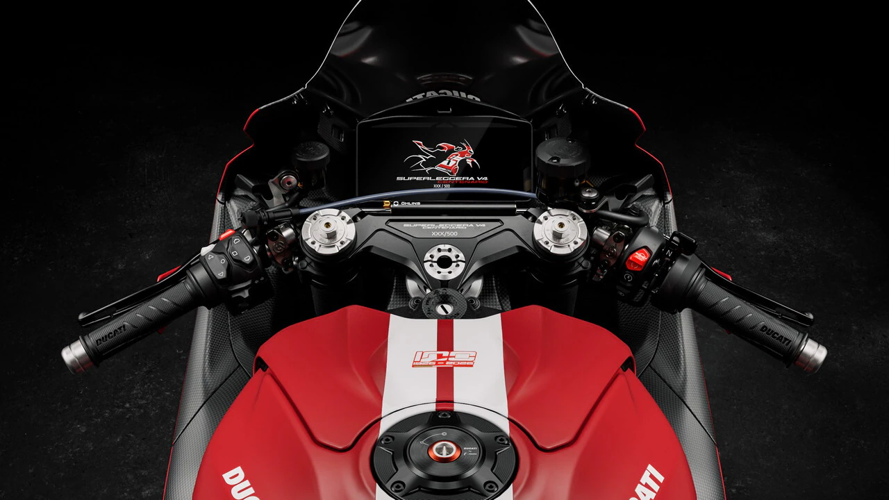 • The new Superleggera V4 is the first street-legal bike to be equipped with carbon-ceramic brakediscs