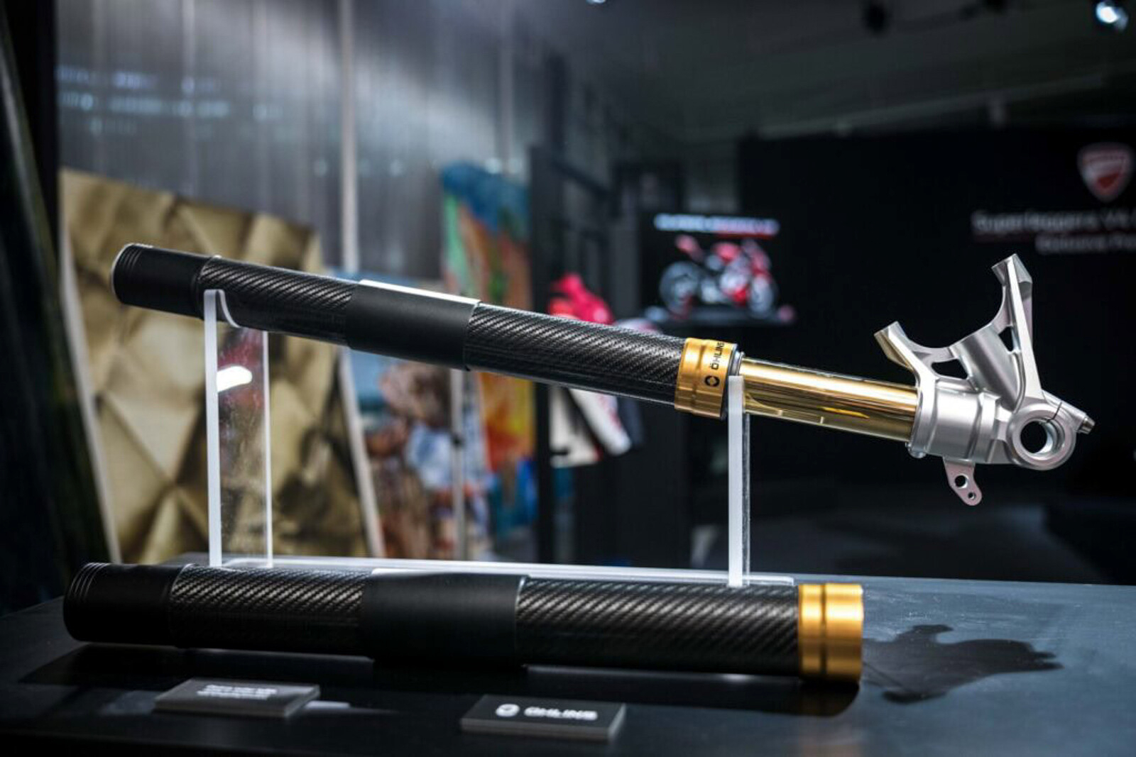 • New Öhlins NPX 25/30 Carbon 43mm pressurised with outer tube made in carbon fibre, machined-from-solid aluminium fork bottoms and top/lower triple clamps