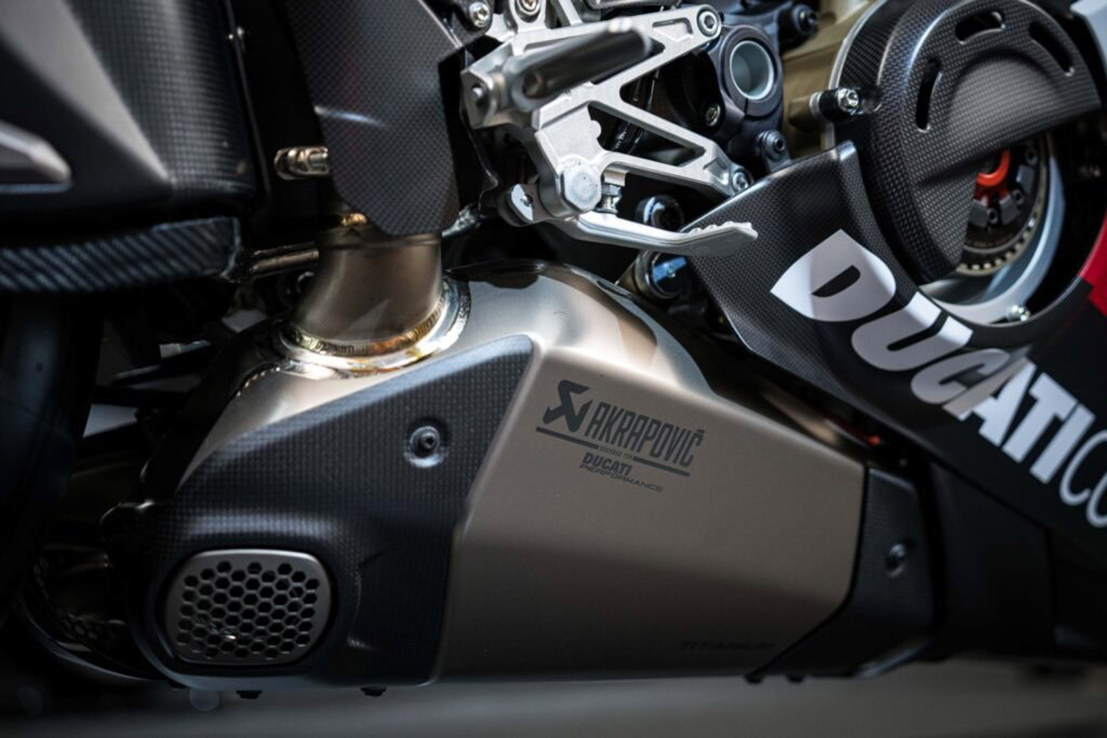 • The full titanium racing system by Akrapovič is included in the Racing Kit. It makes the bike -3kg/-6.6lb lighter and boosts power to 247hp (with Ducati Corse Performance Oil)
