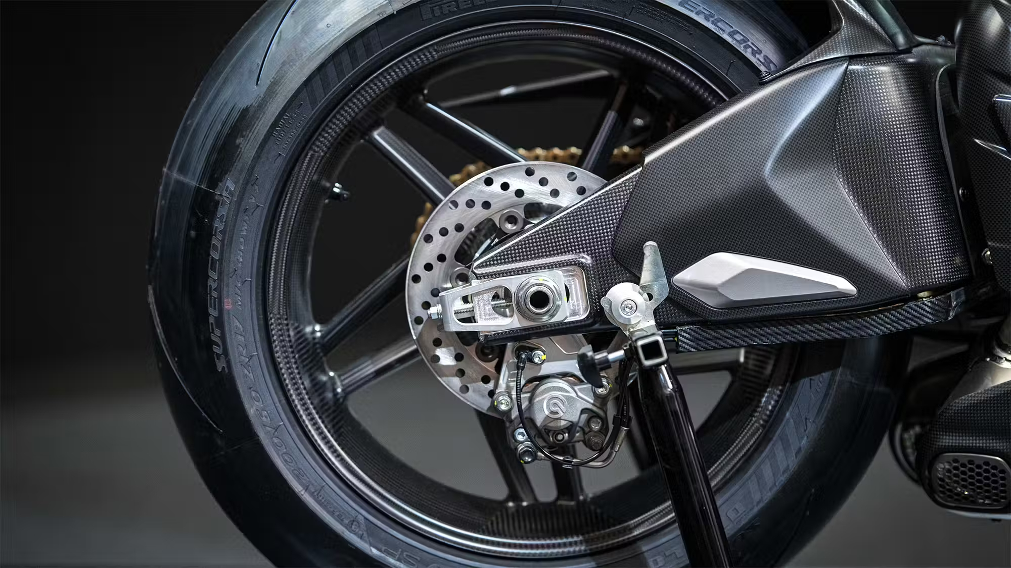 • Weight saving –0.2kg/-0.44lb vs Panigale V4’s rear disc