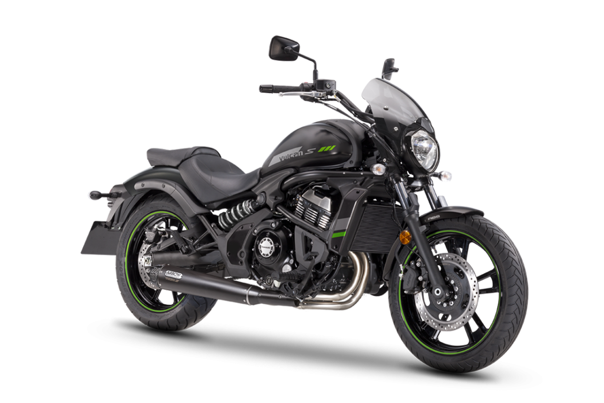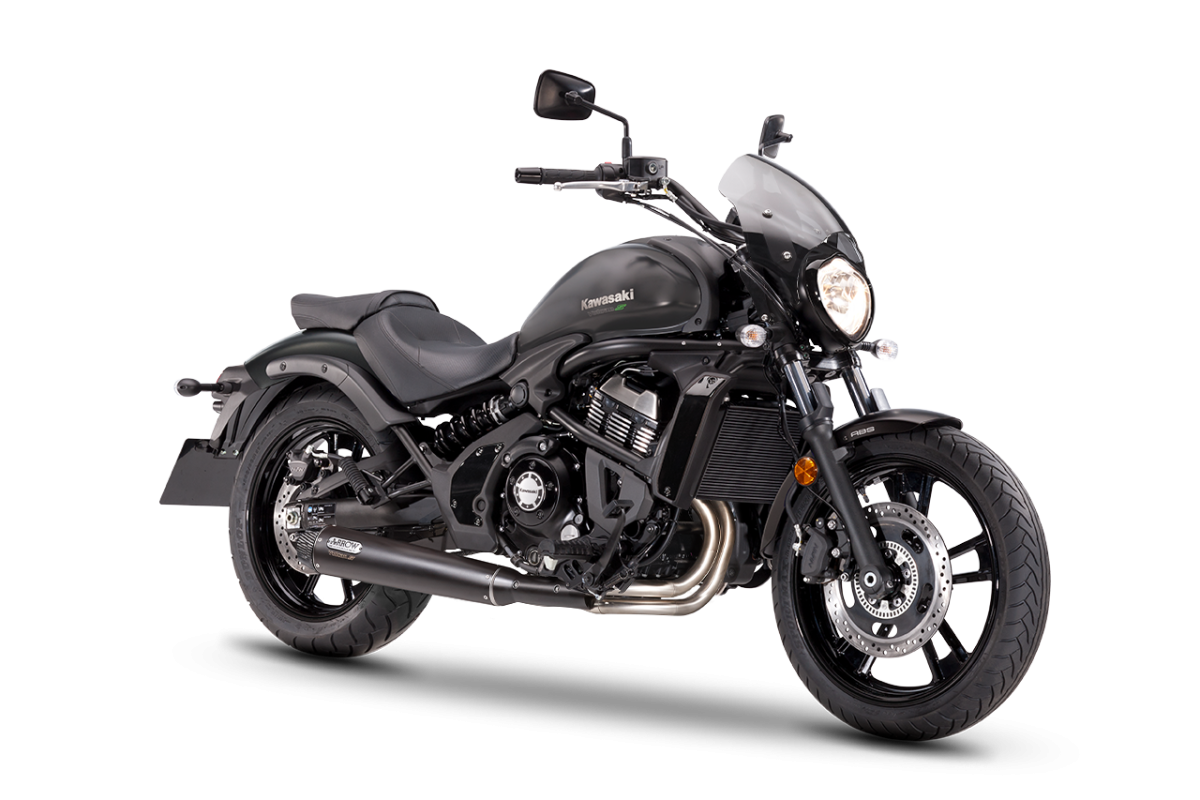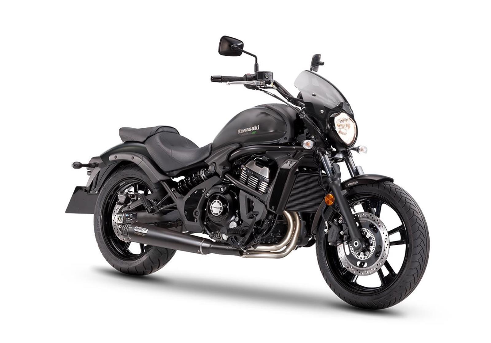 Arrow matt black exhaust system for Vulcan S. Full system made of stainless steel with catalyst and carbon endcap. This system is lighter compared to the stock exhaust system and gives a deep sporty sound. This exhaust system is homologated according to Euro4 regulations (emissions and noise) and has ECE type-approval.