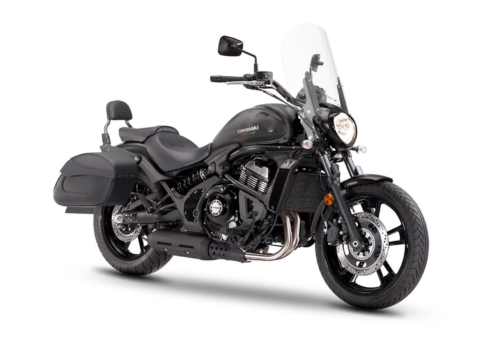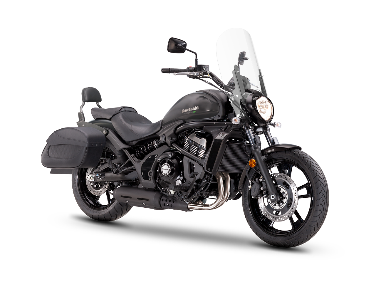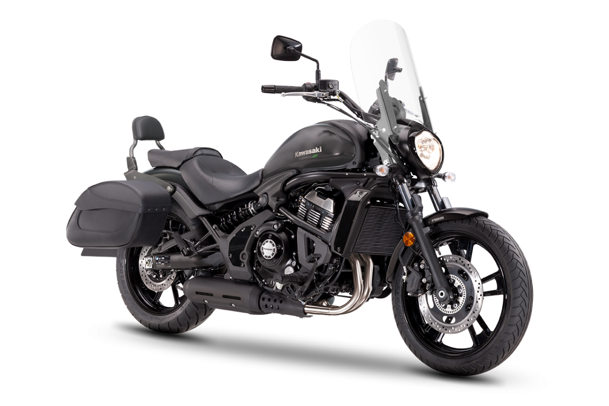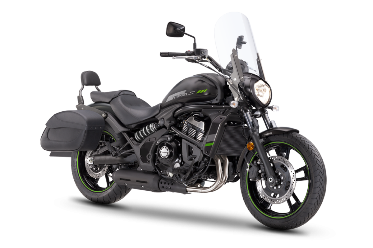 The Kawasaki Vulcan S Sport comes with a wind deflecting bikini screen and a full Arrow sports exhaust system. Whereas the Vulcan S Light Tourer comes with a large touring screen, a fixed backrest and a set of fixed leather panniers.