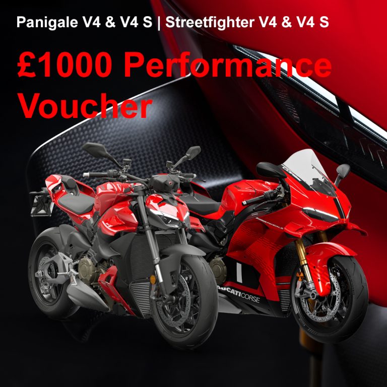 Benefit from £1000 Performance Voucher towards Ducati Accessories or Apparel when Purchasing a New Panigale or Streetfighter V4