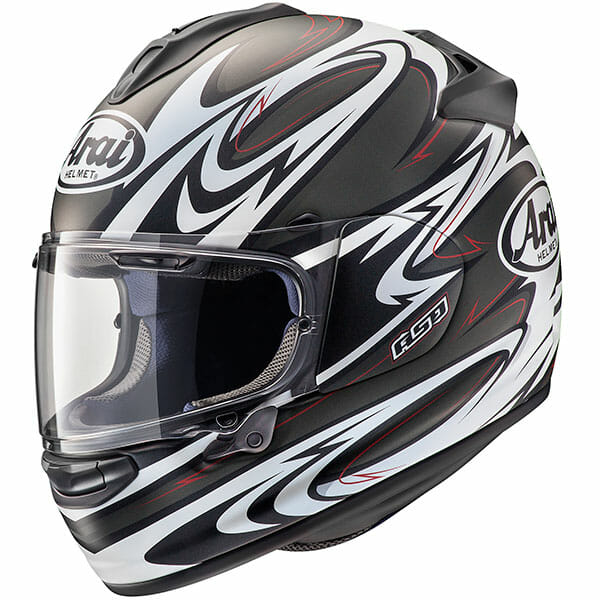 Chaser-X is the third Arai helmet that makes use of the new VAS (variable Axis System) technology that offers a significant larger and smoother shell area above the SNELL test line greatly improving the important helmet glancing off performance. The Chaser-X makes use of an also completely new ventilation system derived from the RX-7V, instantly recognizable by the large, single intake duct on top of the helmet. This Top Ventilation System is derived from the RX-7V diffuser system. The replaceable interior is lined with an anti-microbial fabric. The Chaser-X features FCS (Facial Contour System) and a fixed, non-retractable mini chin cover. The chin vent is also new, while the Formula One developed visor lock system is the same as used on the RX-7V. All Chaser-X helmets come with a standard Max Vision visor with a Pinlock inlay lens separately packed in the box.