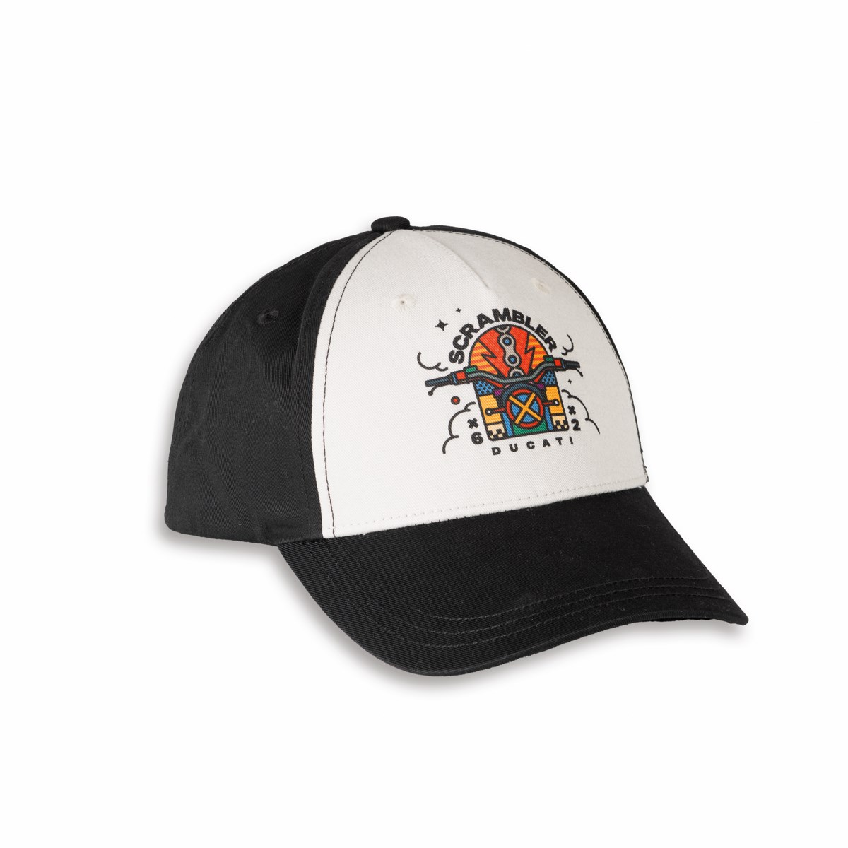 This stylish cap brings the vibrant energy of Ducati Scrambler with its unique design and bold detailing. Crafted for comfort and durability, it features adjustable sizing to fit perfectly, making it an essential accessory for any motorcycle enthusiast. | MATERIALS | 100% cotton | CUSTOMISATION | Print | LINEA PRODOTTO | Scrambler | COMPOSITION | Cotton