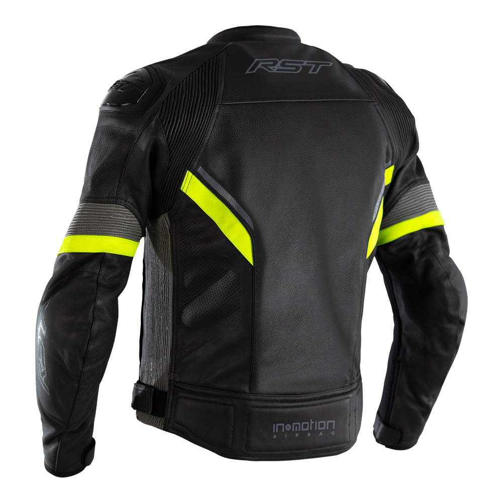 RST Sabre Airbag CE Mens Leather Jacket (SO) - Flo Yellow