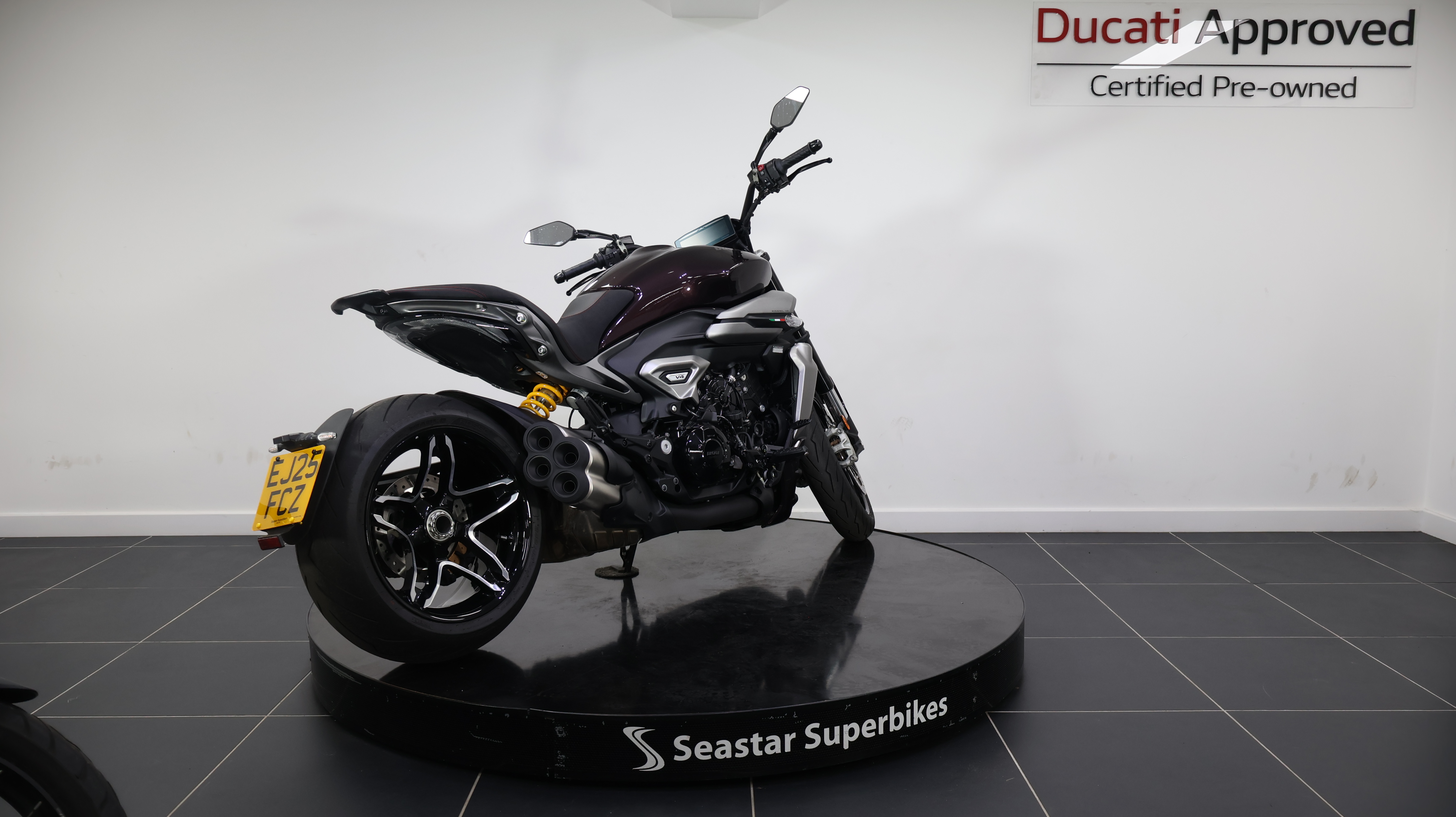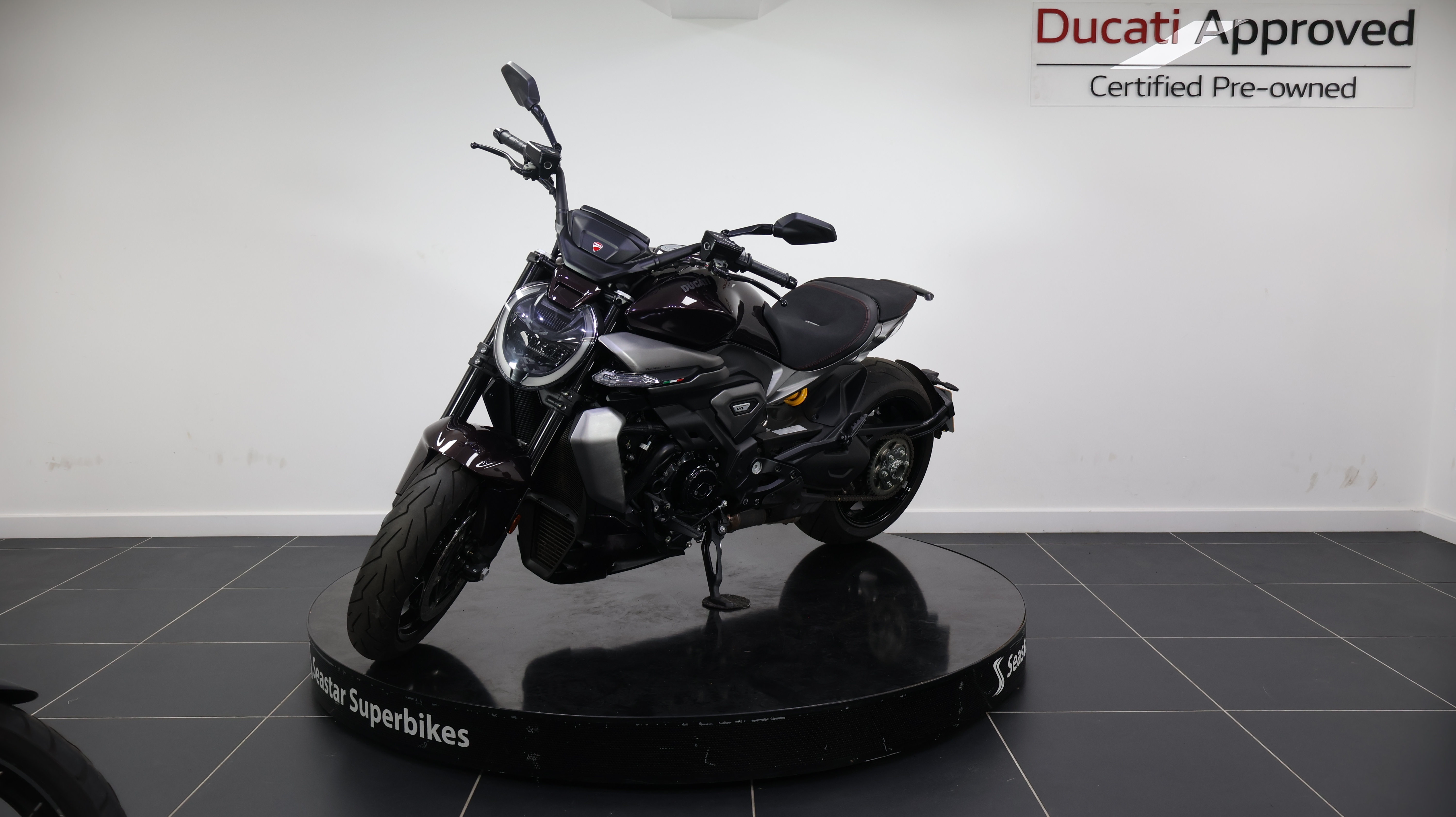 Here at Seastar, we are proud to offer this exceptional 2025 Ducati XDiavel V4 in Black Lava, with only 375 miles from new. As one of Ducati’s most advanced power cruisers, it features the high performance V4 engine delivering impressive power and smooth response, combined with a low, stretched riding position for a unique blend of comfort and performance. With its striking styling, premium finish, and refined engineering, this bike is built to deliver a commanding presence and an engaging ride on every journey.