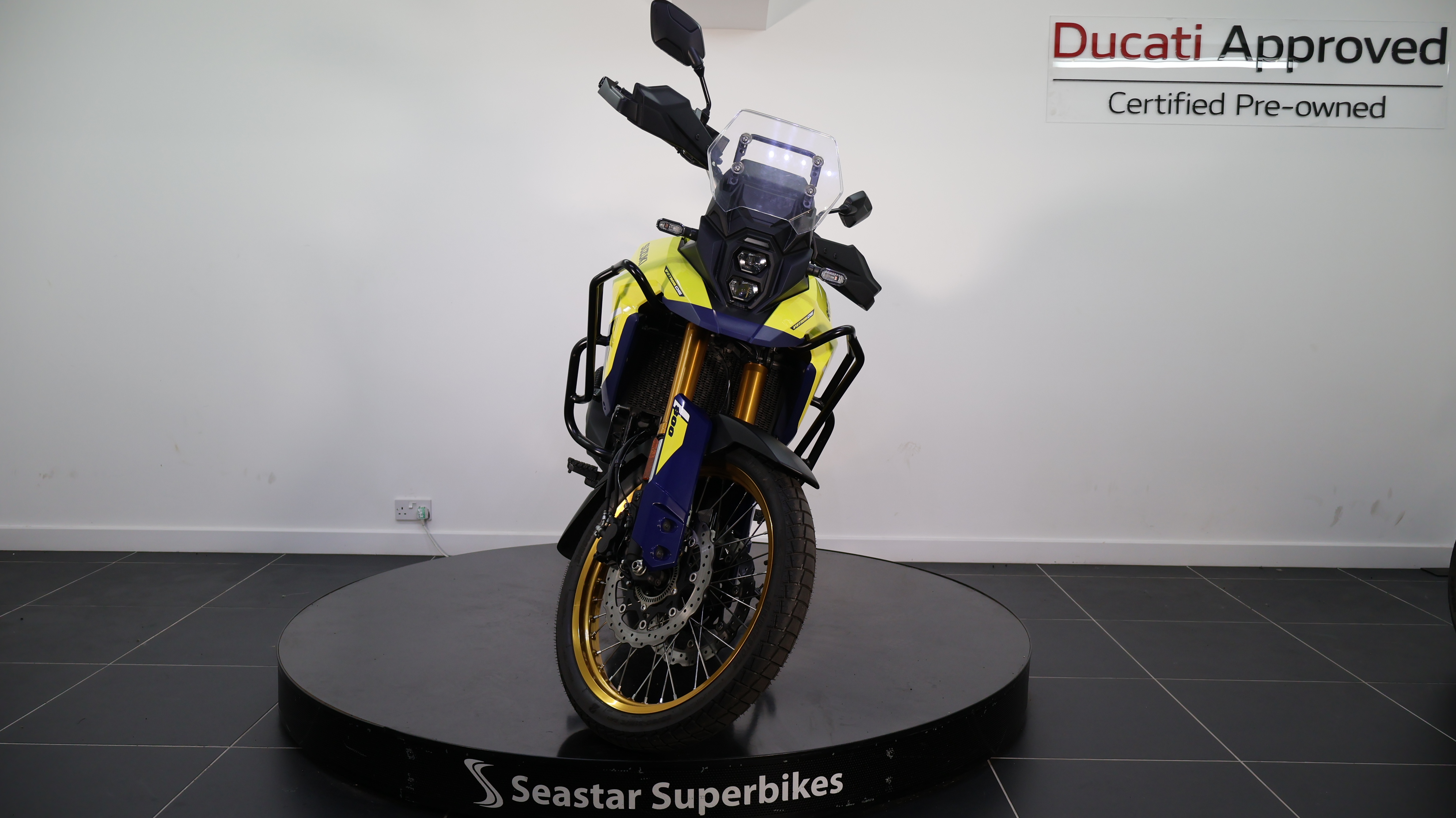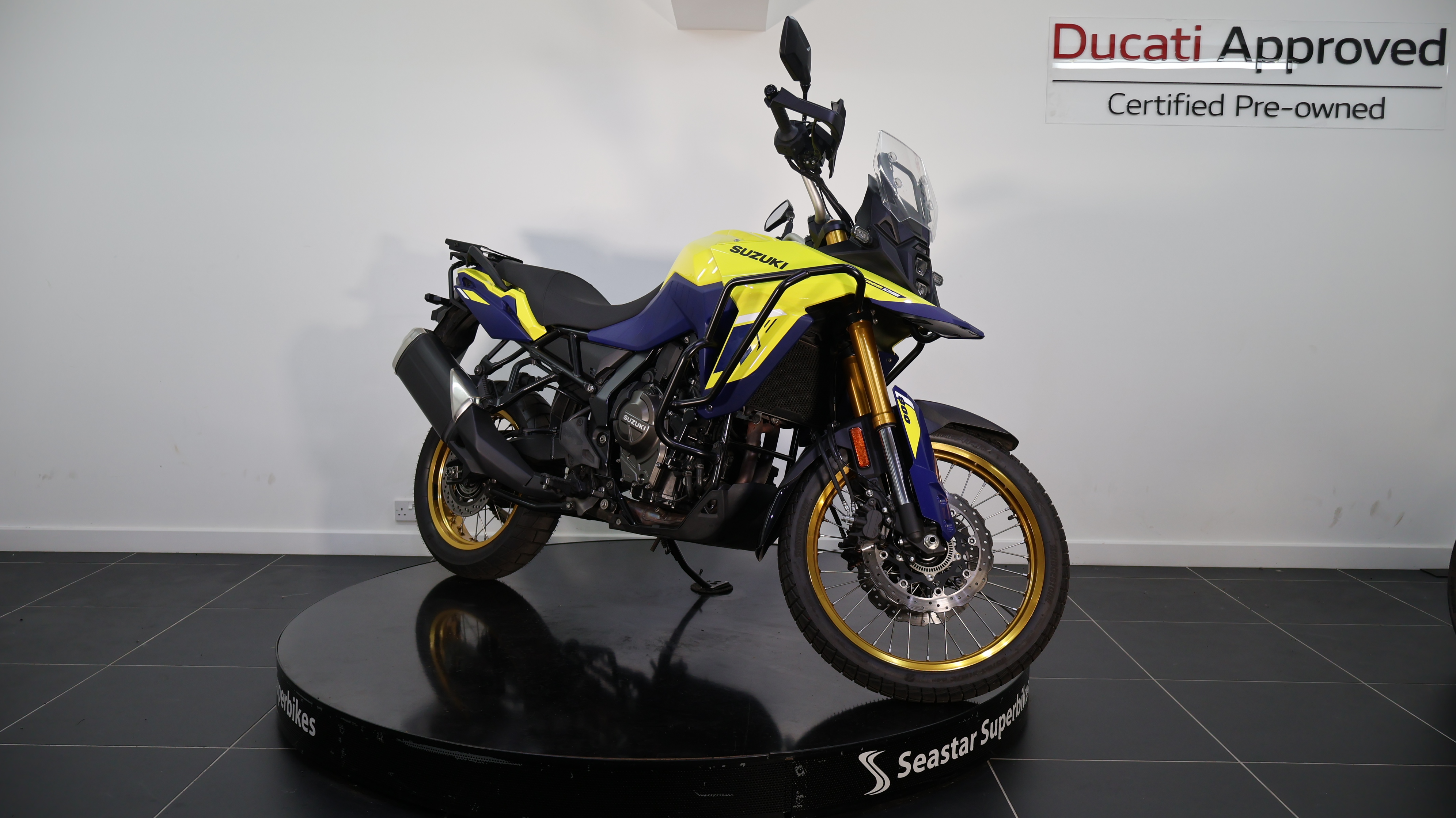 We are delighted to offer this outstanding single owner 2023 Suzuki V-Strom 800DE. As Suzuki’s most off-road capable V-Strom, this adventure bike comes equipped with premium electronics, including traction control with a dedicated GRAVEL mode, and rider-adjustable ABS. It also features a long-travel suspension setup and a 21-inch front wheel, ensuring exceptional performance on all terrain