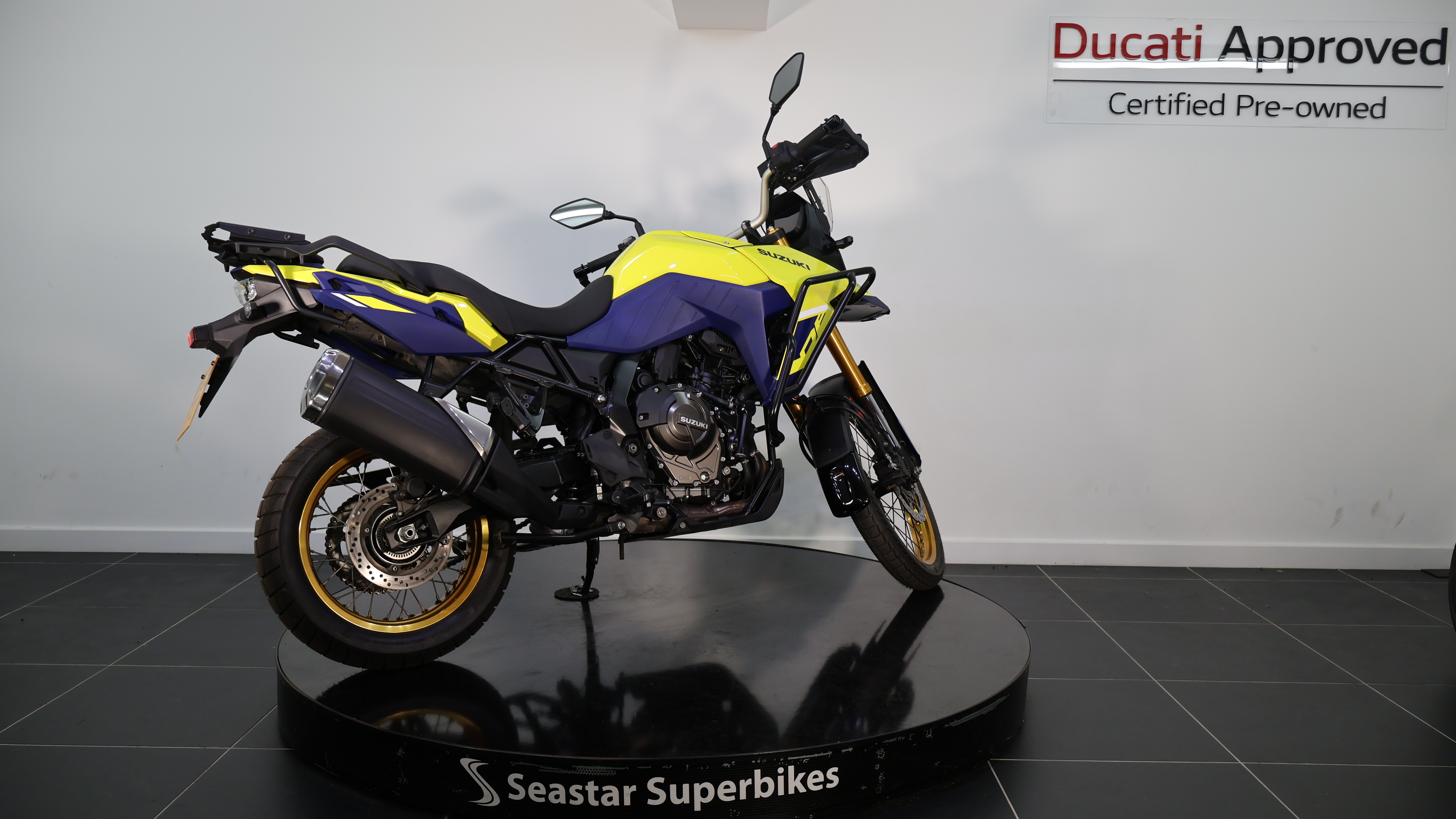 The 2023 Suzuki V-Strom 800DE is a mid-size adventure motorcycle designed for both on-road touring and off-road exploration. Here are its standout features: