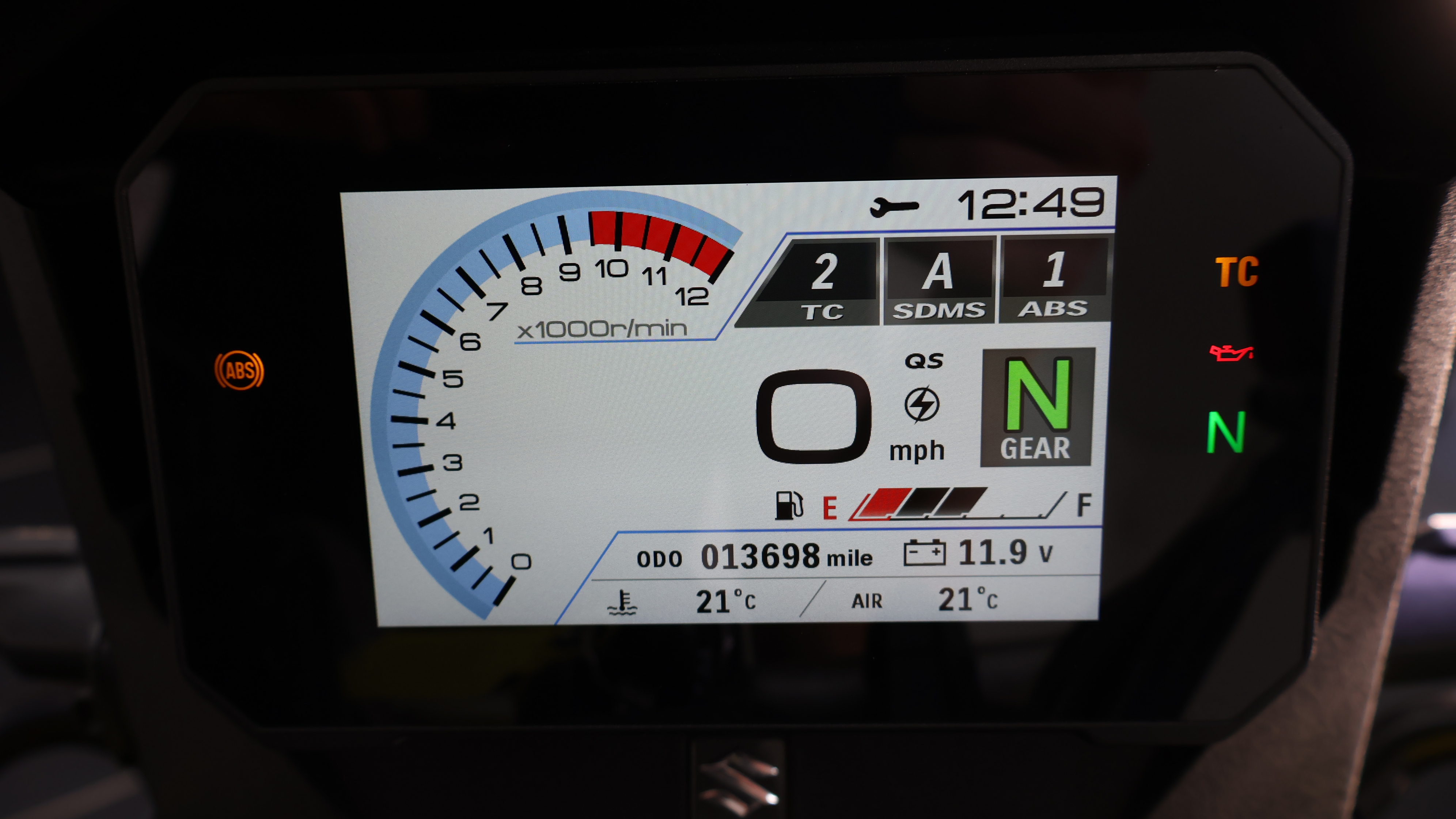 – Electronics & Rider Aids: Includes Suzuki Intelligent Ride System (S.I.R.S.), featuring traction control with a GRAVEL mode, rider-adjustable ABS, and a bi-directional quick shifter.